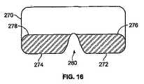 タブレット片形成の一例は以下のとおりである。標準的な単一切込み付単層均一薬剤タブレットが割れる。この割れが、それぞれがタブレット片と呼ばれる二個の主切片を作る。量的に少ないことが好ましい、切れ端と細粉が生じることがある。本発明のセグメント化した層状タブレットでは、本発明を正しく使用するために、内側セグメントなどセグメント中に横方向に切込みをつけることが有利である。これは、ファイルなどの器具を用いて行うことができる。続いて、前記切込みを介して前記タブレットを割った結果、タブレットの2つの主フラグメント片を表わし、切れ端と細粉といったより小さなフラグメントを含まない、二個のタブレット片が生じる。 An example of tablet piece formation is as follows. Breaks standard single-cut single layer uniform drug tablets. This crack creates two main pieces, each called a tablet piece. Cuts and fines may occur which are preferably small in quantity. In the segmented layered tablet of the present invention, in order to properly use the present invention, it is advantageous to make a lateral cut in the segment, such as the inner segment. This can be done using an instrument such as a file. Subsequent splitting of the tablet through the incision results in two tablet pieces representing the two main fragment pieces of the tablet and not including smaller fragments such as chips and fines.