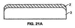 「正面図」は、正面として任意に決めた側部に対してタブレットを通る理論的なジオメトリック面を有するタブレットの断面を意味する。「側面図」と記されている図面は、対応する「正面図」を有し、正面図の右側からタブレット全体を通る断面、すなわち、側面図とは、断面正面図に対して90度の角度でタブレット全体の縦軸を通る平面によって取得した断面である。各正面図は、タブレットの前面からタブレットあるいはタブレット片の背面までを測定した水平断面の中天を通る概略断面を表わす。「正面図」は、タブレットの主軸に対して平行でもある(例えば、長方形(正方形ではない)横断面を有するタブレットについては、周辺の長辺が、断面である正面図を記載している平面と平行である)。この平面は、タブレットの正面と背面の間の半分のところに位置している。図1b及び2c−dの側面図は、長いほうの横方向寸法(すなわち、幅)の中天を通る縦方向平面から見た図であり、従って、正面の中点に、それに直交して配置されている。図面は、タブレットの垂直中点において長方形であるが正方形でない水平断面を有するタブレットについて描かれている。 “Front view” means a cross section of a tablet having a theoretical geometric surface through the tablet with respect to the side arbitrarily determined as the front. The drawing labeled “side view” has a corresponding “front view” and is a cross section through the entire tablet from the right side of the front view, ie, the side view is at an angle of 90 degrees with respect to the cross section front view. It is the cross section acquired by the plane which passes along the longitudinal axis of the whole tablet. Each front view represents a schematic cross-section passing through the middle of a horizontal cross section measured from the front of the tablet to the back of the tablet or tablet piece. A “front view” is also parallel to the tablet's main axis (for example, for a tablet having a rectangular (not square) cross-section, the plane describing the front view with the long side of the periphery being a cross-section. Parallel). This plane is located halfway between the front and back of the tablet. The side views of FIGS. 1b and 2c-d are views from a longitudinal plane through the middle of the longer lateral dimension (ie, width) and are therefore located at the midpoint of the front and perpendicular to it. Has been. The drawing is drawn for a tablet having a horizontal cross section that is rectangular but not square at the vertical midpoint of the tablet.