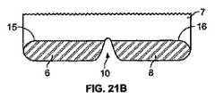 薬理学的活性量の薬物あるいは複数薬物を含むセグメントは、斜行平行線で示されており;薬理学的非有効量セグメントは、プレーン(斜行平行線又は点描のない、クリアな状態)で示されている。一貫させるために、タブレット片は、タブレットがダイから外れた後にタブレット片が生じるにもかかわらず、タブレット片が形成されているタブレットと同じ方向に記載されている。図中のタブレットの点線は、タブレットの表面上又は表面内にある印刷したマーク、あるいはその他の印、あるいは切込みを表わしており、これが切込みであれば、この切込みは、断面正面図に現れるのに十分に深くタブレット中に延在していない。切込みを反映する図に示す横方向点線は、本発明のタブレットの切込みの深さを限定するものではない。表面の切込みを表わす平面図上の水平方向の点線は概略的なものであり、切込み、印刷マーク、その他の完全な縦方向の大きさを表わす必要はない。 Segments containing a pharmacologically active amount of drug or multiple drugs are indicated by oblique parallel lines; pharmacologically ineffective dose segments are plain (clear state without diagonal lines or stippling) It is shown. For consistency, the tablet piece is described in the same direction as the tablet in which the tablet piece is formed, even though the tablet piece occurs after the tablet is released from the die. The dotted lines on the tablet in the figure represent printed marks on the surface of the tablet, or other marks, or incisions, and if this is an incision, it will appear in the cross-sectional front view. Not extending deeply into the tablet. The horizontal dotted line shown in the figure reflecting the cut does not limit the depth of cut of the tablet of the present invention. The horizontal dotted lines on the plan view representing the surface cuts are schematic and need not represent cuts, print marks, or other full vertical dimensions.
