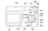 尚、左キー255、右キー256、上キー257、下キー258により、複数の項目の中から1つの項目のみを選択する他、2つ以上の項目を選択することができるようにユーザインタフェースが構成されることが好ましい。例えば、決定ボタン253が押下された状態で左キー255、右キー256、上キー257、下キー258が操作された場合に、その操作により指定された2つ以上の項目が選択されたものとシステム制御部50が認識するように構成してもよい。 シャッタボタン260は、図1で説明したように、例えば半押し状態で、AF処理、AE処理、AWB処理、EF処理等の開始がシステム制御部50に指示され、全押し状態で、撮影がシステム制御部50に指示されるように構成されている。録画/再生切り替えスイッチ261は、録画モードを再生モードに、再生モードを録画モードにそれぞれ切り替える際に操作する。 Note that the user interface can be used to select not only one item from a plurality of items, but also two or more items by the