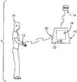 図2Bに示されているように、ディスプレイを収容した装置はまた、制御論理装置を催促するためにユーザによって作動することのできるユーザ入力装置22を有している。ディスプレイ18を収容した装置と無線検出ユニット20の両方は情報供給装置14と交信して、信号を識別し且つ情報を得ることができる。  As shown in FIG. 2B, the device containing the display also has a