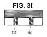 これで、実際のバイア形成プロセスを開始でき、簡明な例示のために、基本的な環状バイアの手法を用いる(上記したように寸法は正しい縮尺ではないことに留意)。従って、図3Dに示すように、環状バイア322、324は、第2の溝308、310の底面316から、さらにメタライズ層のそれぞれのポイントである、それぞれ所望する接続点318、320まで延びるように作成される。  Now the actual via formation process can be started, and for the sake of conciseness, use the basic annular via approach (note that the dimensions are not to scale as noted above). Thus, as shown in FIG. 3D, the