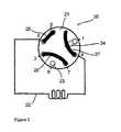 図面では、回転子は、その溝25、26、27によって表されている。回転子を回転させると、溝は、内側固定子面に対する位置を変えるので、弁を通る新しい流路ができる。The orifice of the inner stator surface of INV-907 is shown as a circle in FIGS. 1 to 3, as in