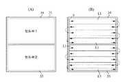 また、図6(A)及び(B)は、高電圧を得るために2枚のセル34及び35が太陽電池基板33上に形成された構造の太陽電池に対して、検査装置が光学的走査を行う様子を示している。同図(B)はセル34及び35に対する検査装置の走査の様子を示しており、この場合にも各セル34及び35に対して個別に、単一のセルが形成された太陽電池基板と同じように第一走査L1から順次走査を行い、各セル34及び35の最下端の走査L5を行う位置を直前の走査に重なるように位置調整すれば、照明光が該当セルに与える光のエネルギーを均一にすることが出来る。なお、本例では2枚のセル34及び35を示しているが、3枚以上でも同様である。6 (A) and 6 (B) show that the inspection apparatus optically scans a solar cell having a structure in which two