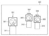 このときの表示部9が表示する画像の様子を図11に示す。図11は、表示部9にて表示された画像301を示すものである。画像301には人物311、人物312、人物313が存在し、顔検出部20によって検出されたそれぞれの人物の顔を囲むように、顔枠321、322、323が表示されている。そして、これらの顔枠の上には、この顔の認識結果を示す登録名称‘B’(331)、グループ名称‘brother’(332)、および、グループ名称‘family’(332、333)が表示されている。このように、表示部9が、検出された顔のそれぞれの位置に顔枠を表示し、それらの顔枠の上に登録名称あるいはグループ名称を表示することで、どの顔を、誰と認識したのかが、ユーザが一目で把握することができる。  The state of the image displayed on the display unit 9 at this time is shown in FIG. FIG. 11 shows an