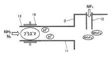 H*+NF3→NHxFy(NH4FH、NH4FHF等)As shown in FIG. 3, NH3 gas (at least one of NH3 gas and H2 gas) and N2 gas are introduced from the