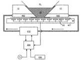 先の実施例におけるように、基板温度を効率的な態様で制御する助けとなるように、フィードバック制御装置を設けることができる。この場合には、基板テーブル熱交換流体の温度及び/又は流量は、局部温度センサ60のシステムによって計測された1つ以上の基板温度及び/又は基板テーブル/基板保持器温度と、1つ以上の標的温度Ttとの間の差を縮小するように調整可能である。  As in previous embodiments, a feedback controller can be provided to help control the substrate temperature in an efficient manner. In this case, the temperature and / or flow rate of the substrate table heat exchange fluid may include one or more substrate temperatures and / or substrate table / substrate holder temperatures measured by the