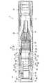 また、ブロック側雄ネジ部51及び筒状部側雌ネジ部52と、アダプタ側雌ネジ部71、挿入側第1雄ネジ部74及び挿入側第2雄ネジ部75とは互いに逆ネジとして形成されている。すなわち、ブロック側雄ネジ部51及び筒状部側雌ネジ部52を先端筒状部22の後端側から見たときの、ネジ山の螺旋の回転方向と、アダプタ側雌ネジ部71、挿入側第1雄ネジ部74及び挿入側第2雄ネジ部75を先端筒状部22の先端側から見たときの、ネジ山の螺旋の回転方向とが逆向きになっている。