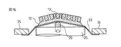 次に、ピックアップ装置にて研削面(分割チップ13’)を露出面とする積層体を載せたリングフレーム24をピックアップ装置の固定テーブル上に載せ、第二の接着性シート23に均一な張力を作用させて拡張せしめる。簡単には、図15に示すようなドーナツ状の円筒リング部材25を、第二の接着性シート23の背面より突き上げることで、第二の接着性シート23に均一な引張力を作用させる。このとき、接着剤層12も同時に拡張せしめられるため、分割チップ13’同士の距離が拡がり、分割チップ13’と接着剤層12の間に空隙が形成される。これにより、後述する分割チップのピックアップが容易になるだけでなく、チップ位置の認識が容易になる。第二の接着性シート23に均一な張力を作用させて拡張せしめる際の破断に耐えうるため、第二の接着性シート23は引張り強さが10 N/cm 以上で、破断点伸び率が200%以上の伸びを有するものが好ましい。なお、かかる測定値は、JIS Z 0237 に準拠した方法で測定される値である(幅15mmの試験片を切り取り、標線間距離を50mmとして引張り試験機にて毎秒約5mmの速さで引張り、切断時の荷重および伸びを測定する)。5. Next, a
