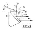 特に図12〜39を参照すると、エレクトロルミネッセント素子(すなわち、LED、エレクトロルミネッセント・フィルムなど)を含む一連の照明素子が、レチクルパターン22を照らすために、照明素子200,210,211,224,240,256のファイバー204,216,217,232,246,262からの出力と連動して使用するために提供される。図12〜39の照明素子は、照明素子200,210,211,224,240,256のファイバー204,216,217,232,246,262のいずれかと連動して使われても良いが、図12〜39の照明素子は、便宜のために照明素子200のファイバー204と関連するように、以下に記載され図に示される。With particular reference to FIGS. 12-39, a series of illumination elements, including electroluminescent elements (ie, LEDs, electroluminescent films, etc.), illuminate the