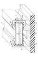また、LEDバー36とシリコンバー40を複数積層化した積層化構造50をLEDバー固定装置38に挿入する一工程を示す模式的鳥瞰構造は、図6に示すように表される。  Further, a schematic bird's-eye view structure showing one step of inserting the