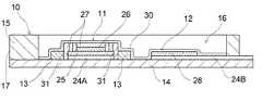 参照極12と対極13は、それぞれ配線パターン24Bとその上に形成された参照極用電極28、配線パターン24Cとその上に形成された対極用電極29からなる。これら参照極12と対極13の詳細については後述する。  Each of the