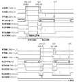 図31は、特許文献1に記載された表示装置の動作タイミングチャートである。同図には、上から順に、1ライン目の走査線701及び給電線801、2ライン目の走査線702及び給電線802、3ライン目の走査線703及び給電線803、奇数行の発光画素に割り当てられた信号線、偶数行の発光画素に割り当てられた信号線の信号波形が記載されている。走査線に印加される走査信号は、1水平期間(1H)ずつ順次1ラインごとにシフトしていく。1ライン分の走査線に印加される走査信号は、2個のパルスを含んでいる。1番目のパルスは時間幅が長く1H以上である。2番目のパルスは時間幅が狭く、1Hの一部である。1番目のパルスは上述した初期化期間及び閾値補正期間に対応し、2番目のパルスは信号電圧サンプリング期間及び移動度補正期間に対応している。また、給電線に供給される電源パルスも1H周期で1ラインごとにシフトしていく。これに対して、各信号線は2Hに1回、信号電圧が印加され、基準電圧にある時間帯を1H以上確保することが可能となる。  FIG. 31 is an operation timing chart of the display device described in