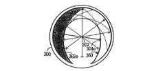 図3A〜3Eに示すように、完全な隆起除去領域360は、ブランク300を複数の第2の軸304a〜eを中心に回転させ(それぞれ、ブランクの回転軸302からオフセットされている)、ブランク300から複数の弧状部位362a〜eを切削することによって形成される。一般的に、5つの弧状部位362を切削することにより、隆起除去領域360が形成されるが、対応する数のオフセット回転軸304を用いて更に多くの弧状部位362を切削すれば、結果として、より円滑な隆起除去領域360を生ずる。  As shown in FIGS. 3A-3E, the complete ridge removal region 360 rotates the blank 300 about a plurality of