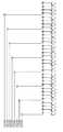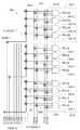 各ローカル・デコード線は、ローカル・デコード線と垂直に交差するデコード線に接続され、後者のデコード線は便宜上水平デコード線と称することができ、接頭語「H」で表記されうる。例えば、水平デコード線HDEC7はローカル・デコード線VLCDEC7に接続される。用語「水平」は相対的で、水平デコード線が駆動回路310に入力線と同じ方向に配向されることを示すこと、と理解されるべきである。各水平デコード線は、ローカル・デコード線(すなわち、水平デコード線と直角をなす)と同方向に配向されるクラスタ・デコード線に接続される。クラスタ・デコード線DEC[0]、...、DEC[7]は、各クラスタ・デコード線が対応するクラスタを選択するので、そのように名づけられる。例えば、クラスタ・デコード線DEC[0]は、クラスタ320−0を選択するが、それは、クラスタ・デコード線DEC[0]は、それぞれ主入力線P0、P1、P2、P3を通してクラスタ320−0の駆動回路310−0、310−1、310−2、310−3の各々に、ローカル・デコード線VLOCDEC0を介して接続されるから、である。 Each local decode line is connected to a decode line that intersects perpendicularly with the local decode line, and the latter decode line can be referred to as a horizontal decode line for convenience and can be denoted by a prefix “H”. For example, the horizontal decode line HDEC7 is connected to the local decode line VLCDEC7. It should be understood that the term “horizontal” is relative and indicates that the horizontal decode line is oriented to the drive circuit 310 in the same direction as the input line. Each horizontal decode line is connected to a cluster decode line that is oriented in the same direction as the local decode line (ie, perpendicular to the horizontal decode line). Cluster decode lines DEC [0],. . . , DEC [7] are so named because each cluster decode line selects the corresponding cluster. For example, the cluster decode line DEC [0] selects the cluster 320-0, and the cluster decode line DEC [0] is connected to the cluster 320-0 through the main input lines P0, P1, P2, and P3, respectively. This is because the drive circuits 310-0, 310-1, 310-2, and 310-3 are connected to each other via the local decode line VLOCDEC0.