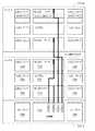 各ドライバ310は3本の入力線を有するが、それは論理ANDゲートであってよい。ドライバ310−0の場合、SA0およびSB0と表示された入力線のうちの2本は、2次入力線と呼ばれる。2次入力線はデコード線DEA[0]、DEA[1]、DEB[0]およびDEB[1]に接続されるが、それらは補助デコード線と呼ばれる。クラスタ、例えば、クラスタ320−0の中で、第2のデコード線と共に補助デコード線が特定のドライバ310を決定する。例えば、クラスタ320―0では、補助デコード線DEA[0]、DEA[1]、DEB[0]、DEB[1]は、4つのドライバ310−0,310−1,310−2,310−3のうちの1つを選択する、2ビットの情報を供給する。各ドライバ310への3本目の入力線は、主入力線として知られている。ドライバ310−0、...、310−31への主入力線は、図3でP0、...、P31と表記される。主および2次入力線は第1の方向に配向され、それは図3の実施例で水平線と称してもよい。当該クラスタでは、クラスタの中のドライバ310への主入力線の全ては、第1の方向に対して垂直な第2の方向に配向されたローカル・デコード線を介して、共に接続される。第2の方向は、図3の実施例において、垂直と称してもよい。「水平」および「垂直」の用語は互いに相対的なものであることは理解されるべきである。ローカル・デコード線は、クラスタ320に対応する末尾番号を有する参照符号により表記される。例えば、クラスタ320−7の主入力線に接続するローカル・デコード線はVLOCDEC7と表記され、ここで接頭語「V」は便宜上垂直を示す。 Each driver 310 has three input lines, but it may be a logical AND gate. For driver 310-0, two of the input lines labeled SA0 and SB0 are called secondary input lines. Secondary input lines are connected to decode lines DEA [0], DEA [1], DEB [0] and DEB [1], which are called auxiliary decode lines. Within a cluster, eg, cluster 320-0, the auxiliary decode line along with the second decode line determines a particular driver 310. For example, in the cluster 320-0, the auxiliary decode lines DEA [0], DEA [1], DEB [0], DEB [1] are four drivers 310-0, 310-1, 310-2, 310-3. 2 bits of information are supplied to select one of the two. The third input line to each driver 310 is known as the main input line. Drivers 310-0,. . . , 310-31 are labeled P0,. . . , P31. The primary and secondary input lines are oriented in a first direction, which may be referred to as a horizontal line in the embodiment of FIG. In the cluster, all of the main input lines to the driver 310 in the cluster are connected together via local decode lines oriented in a second direction perpendicular to the first direction. The second direction may be referred to as vertical in the embodiment of FIG. It should be understood that the terms “horizontal” and “vertical” are relative to each other. The local decode line is represented by a reference sign having a tail number corresponding to the cluster 320. For example, the local decode line connected to the main input line of cluster 320-7 is denoted as VLOCDEC7, where the prefix “V” indicates vertical for convenience.