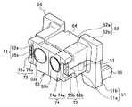 更に、第1の光路ブロック51の第1の凸片55aと第2の光路ブロック52の第1の凸片62aによって、第1の嵌合部71が構成されている。また、第1の光路ブロック51の第2の凸片55bと第2の光路ブロック52の第2の凸片62bによって、第2の嵌合部72が構成されている。  Furthermore, a first