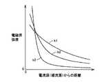 図3は、電流源(磁流源)からの距離と電磁界の強度との関係を示した図である。図3を参照して、電磁界は3つの成分から成る。曲線k1は、波源からの距離に反比例した成分であり、「輻射電磁界」と称される。曲線k2は、波源からの距離の2乗に反比例した成分であり、「誘導電磁界」と称される。また、曲線k3は、波源からの距離の3乗に反比例した成分であり、「静電磁界」と称される。 FIG. 3 is a diagram showing the relationship between the distance from the current source (magnetic current source) and the intensity of the electromagnetic field. Referring to FIG. 3, the electromagnetic field is composed of three components. The curve k1 is a component that is inversely proportional to the distance from the wave source, and is referred to as a “radiated electromagnetic field”. A curve k2 is a component inversely proportional to the square of the distance from the wave source, and is referred to as an “induction electromagnetic field”. The curve k3 is a component inversely proportional to the cube of the distance from the wave source, and is referred to as an “electrostatic magnetic field”.