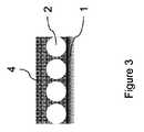 5)被膜は固着段階によって団結される。General coating process The following is an explanation of two possible variations of the process used to obtain such an anisotropic coating. The steps for these variants are shown in FIG. The first embodiment of the coating process includes the following steps: