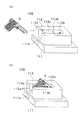 載置台42の上面には、弾倉Mを抜き出した状態のけん銃Gを装着するためのけん銃用刻設部42aと、弾倉Mを装着するための弾倉用刻設部42bとが設けられている。けん銃用刻設部42aは、けん銃Gの側面形状とほぼ一致する形状が刻設されたくぼみである。弾倉用刻設部42bは、弾倉Mの側面形状とほぼ一致する方形状のくぼみである。  On the top surface of the mounting table 42, there are provided a