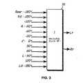 しかし、原則として、本発明はアナログ領域又はディジタル領域(又はこの2つの組み合わせ)で実行することができ、本発明の実際的な実施の形態では、オーディオ信号は、データのブロック中の時間サンプルで表現され、ディジタル領域で処理がなされる。種々のオーディオ信号の各々は、アナログオーディオ信号から導き出すことのできる時間サンプル又はアナログオーディオ信号に変換すべき時間サンプルとすることができる。この種々の時間サンプル化された信号は、適切な形式に、例えば、線形パルス符号変調(PCM)のような形式にエンコードすることができる。 However, in principle, the present invention can be performed in the analog domain or the digital domain (or a combination of the two), and in a practical embodiment of the present invention, the audio signal is a time sample in a block of data. Represented and processed in the digital domain. Each of the various audio signals can be a time sample that can be derived from an analog audio signal or a time sample to be converted to an analog audio signal. The various time sampled signals can be encoded in an appropriate format, for example, a format such as linear pulse code modulation (PCM).