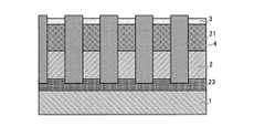 つぎに、図20に示すように、n型半導体層21の表面に、たとえば、厚さ1.6μm程度の酸化膜3を形成する。そして、この酸化膜3を、フォトリソグラフィとエッチングにより、たとえば、2μmおきに2μmの幅の酸化膜マスクとする。ついで、トレンチエッチングをおこない、n型ドリフト層23、n型半導体層2およびn型半導体層21に、開口幅が約2μmのトレンチを約2μmおきに形成する。この際、トレンチは、n型半導体基板1に達しないようにする。  Next, as shown in FIG. 20, an