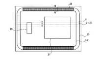 つぎに、実施の形態3にかかる半導体装置について説明する。図22は、実施の形態3にかかる半導体装置の構造を示す平面図である。図22に示すように、素子の表面構造の設けられた活性領域部24が、厚いフィールド酸化膜上に、環状にフィールドプレートが設けられた周辺耐圧構造部25によって囲まれている。図22には、半導体装置の中央にのみ並列pn構造部が図示されているが、実際は、活性領域部24および周辺耐圧構造部25の全面に設けられている。また、PNダイオード28が、ゲートパッド26とソースパッド27の両方を横切っている向き(図22の横方向)の周辺耐圧構造部25に設けられている。この場合、周辺耐圧構造部25の外端からチップ内側に向けて、PNPNの順に設けられている。図22の縦方向の周辺耐圧構造部25においては、PNダイオード28の電界が周辺耐圧構造部25に含まれるフィールドプレートに影響を及ぼす可能性があるため、PNダイオードを設けない。(Embodiment 3)