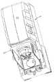 作動ユニット48は、図11の絵画図法による分解図において概略的に示されている。作動ユニット48は、底214と嵌合するふた蓋212を有しており、嵌合されることによって、内部に回路基盤216及び内部駆動アセンブリ218、ならびにキャリッジ部材220を載置するための、実質的に閉じられた内部区画がその間にできる。モータ49は、回路基盤216に電気的に接続できるように載置されている。種々のギア50は、その各端部が、ふた212、底214、回路基盤を貫通するように設けられた適当な開口部によって軸支されており、かつ、例えばふた212を通してギア50のひとつが駆動輪51に結合することにより、該駆動輪51を保持し、回転させるようになっている。該回路基盤216は、手感知システムのエミッタ53とセンサ54を備えている。該エミッタ53とセンサ54は、可撓性配線223及び224によって該回路基盤に電気的に接続されている。キャリッジ部材220は、2つの概円筒形ソケット225及び226を備えている。該ソケット225及び226には上記エミッタ53と上記センサ54がそれぞれ固定された状態で収容できるようになっており、上記エミッタ53と上記センサ54は、ソケット225及び226の一つに同軸向きに収容される。The