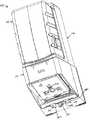 図2について説明する。リザーバ支持ブリッジ200は、背板前部ハウジング202の、概前方に向いている面板17上に支持されている。そこから上記支持ブリッジ200の、水平に配置された支持板18が前方に延出しており、支持板18は2つの側壁19によって支持されている。上記側壁19には、それぞれ軸受21があり、スタブアクスル20がその軸受21に収容されることで、押さえ部材15は、2つの側壁19の間で上記支持ブリッジ200に枢着されている。囲い板16を背板アセンブリ14に結合させ、支持ブリッジ200と押さえ部材15を実質的に纏着することによって上記ハウジングは完成する。リザーバアセンブリ12のポンプアセンブリ25のピストン32が、押さえ部材15と結合することによって、リザーバアセンブリ12は組み立て後のハウジングに対し離脱可能に結合できるようなっている。With reference to FIG. The