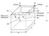 ここで、一例として、操作機8ALの照準位置PAALを検出する手順について説明する。まず、上述の手順により、操作機8ALの発光位置PAL(座標は(x1,y1,z1))を求める。次に、求めた発光位置PALと操作機8ALを把持するプレイヤAの基準位置PA(座標は(W/4,h,D))とを通る直線L1を求める。次に、求めた直線L1と画面3との交点の位置である照準位置PAAL(座標は(AALx,AALy,AALz))を求める。なお、画面3および受光ユニット9Lは共に固定されており、画面3と受光ユニット9Lとの位置関係は既知であるから、画面3の範囲を定める頂点の座標(例えば、原点に最も近い頂点PS1の座標(SX1,SY1,0)や、その対角の頂点PS2の座標(SX2,SY2,0))も既知である。Here, as an example, a procedure for detecting the aiming position PAAL of the controller 8AL will be described. First, in accordance with the procedures described, the light emitting position PAL operation unit 8AL (coordinates(x1,