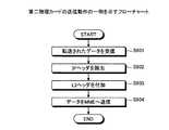 つぎに、ステップS601によって受信されたデータのIPヘッダを除去する(ステップS602)。つぎに、ステップS602によってIPヘッダを除去されたデータにL2ヘッダを付加する(ステップS603)。つぎに、ステップS603によってL2ヘッダを付加されたデータをMME10へ送信し(ステップS604)、一連の動作を終了する。以上のステップにより、第二物理カード120は、第一物理カード110から転送されたデータをMME10へ送信することができる。  Next, the IP header of the data received in step S601 is removed (step S602). Next, an L2 header is added to the data from which the IP header has been removed in step S602 (step S603). Next, the data to which the L2 header has been added in step S603 is transmitted to the MME 10 (step S604), and the series of operations ends. Through the above steps, the second