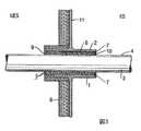 図29はスリーブ6が間に配置されている導路1および管3の概略横断面図である。装置6は例えば図30および31に示すように多部品装置であってもよい。図30および31に示すスリーブはそれ自体が管3の周りを「締め付ける(clamp)」。しかしながら、スリーブはそれ自体が導路の内壁に対して締付けて、ガス入口空間7が装置6と管3の間に存在するようにすることも可能である。図31に示す装置は半径方向に間隔をあけて配置された部分5a、5bからなる。図32に示す装置は使用時にガス入口空間7となる多数のチャネル14を設けられている。図33は巻き付け可能な装置である装置6を示し、装置6は非線形熱膨張特性を有するゴム様材料性のシートを1枚または2枚以上備えている。  FIG. 29 is a schematic cross-sectional view of the