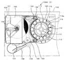 ハウジング102の上板には、収納ケース151を嵌脱可能なカセットガイド152が設けられている。図13に示すように、収納ケース151は、研磨テープ150を収容可能なものである。研磨テープ150は、幅34mm、厚み0.4mm、1巻4.5mの不織布である。研磨テープ150は、巻き軸に巻着された状態で収容されている。これに限らず、研磨テープ150は畳まれた状態で収納ケース151に収容されていても良い。収納ケース151の前面部は、装着時に駆動用歯車110の外周に沿うように円弧形の断面形状に形成されている。  On the upper plate of the