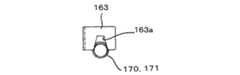 ガイド溝155の先には、キャプスタンローラ156が設けられている。キャプスタンローラ156がテープローラ146に弾発的に当接している。繰り込まれた使用後の研磨テープ150は、キャプスタンローラ156とテープローラ146との間の隙間を通り、収納ケース151に立設された回収筒157(図7参照)の中に入るように配索されている。回収筒157の手前側に、研磨テープ150を回収筒157へ案内するためのガイド部材158が設けられている。  A