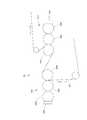 ここで、従来の通常のトイレットロールは、抄紙設備で製造した原反ロールをワインダーに移送し、このワインダーにてトイレットロールの直径にまき直して、トイレットロール幅の複数倍幅以上のログを製造し、その後にかかるログをトイレットロールの幅に裁断してトイレットロールとしている。複数プライの製品を製造する場合にはワインダーにおいて巻き直しの前に複数の原反ロールから巻き出した連続シートを積層するようにしている。 Here, the conventional normal toilet roll is manufactured by transferring the roll roll manufactured by the paper making equipment to the winder, and rolling it to the diameter of the toilet roll with this winder to produce logs that are more than double the width of the toilet roll. Then, the log taken thereafter is cut into the width of the toilet roll to form a toilet roll. In the case of producing a multi-ply product, a continuous sheet unwound from a plurality of original rolls is laminated before being rewound in a winder.