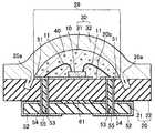 積層基板20の載置領域29には、発光素子10が載置されている。そして、発光素子10の正電極又は負電極は、載置領域29に形成された一対の上面電極51の各々に、導電ワイヤ11によって電気的に接続されている。