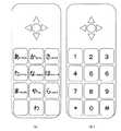 図3の(a)及び(b)のように、通常のボタン式の携帯電話機1が有するボタンと同様の内容、つまり「あいうえお入力」及び「テンキー入力」、を表示することも可能である。