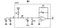 以上のように、本発明第2の実施例における容量検出回路では、タッチによる入力が無いときの出力電圧を、調整用信号ADJと調整容量Caによりキャンセルする事ができるため、微小な入力容量Cfを検出する事が可能となり、この容量検出回路DCKTを用いた座標入力装置において、入力座標を高精度で検出することが可能となる。ここで、タッチによる入力が無いときの出力電圧は、電極オフセット電圧で決まる場合もあり、またオペアンプや各スイッチの各種特性を反映して決まる場合もあるが、いずれも調整用信号ADJと調整容量Caの設定によりキャンセル可能である。 As described above, in the capacitance detection circuit according to the second embodiment of the present invention, the output voltage when there is no touch input can be canceled by the adjustment signal ADJ and the adjustment capacitance Ca. In the coordinate input device using the capacitance detection circuit DCKT, it is possible to detect the input coordinates with high accuracy. Here, the output voltage when there is no touch input may be determined by the electrode offset voltage or may reflect various characteristics of the operational amplifier and each switch, both of which are the adjustment signal ADJ and the adjustment capacitance. Cancellation is possible by setting Ca.