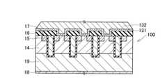 ウェハ100をステージ343上に載置し、ターゲット362として用いる材料をTiNとし、スパッタを行うことによって、TiN層131をウェハ100の表面に形成することができる。ウェハ100は、層間絶縁膜16が形成されている表面側がターゲット362側となるように、ステージ343上に載置される。チャンバ34内を減圧し、ステージ343に設置された温度センサの検知値に基づき、基板温度が所定の温度となるように制御する。基板温度は、室温(25℃)以上300℃以下の範囲で設定することが好ましい。減圧が完了した後に、チャンバ34内にArガスの導入を開始し、ターゲット362と、ステージ343上に載置するウェハ100との間に高電圧を印加する。これによって、図4に示すように、ウェハ100の表面にTiN層131を形成することができる。  The