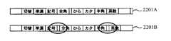特許文献1に開示されている従来の文字入力装置の動作について、図21及び図22を用いて説明する。図21は、従来の文字入力装置で用いられるキーボードのファンクションキーの配列を示す図である。図22は、従来の文字入力装置で表示されるガイダンス情報の一例を示す図である。従来の文字入力装置には、図21(a)に示すキーボード2101Aのファンクションキー2102Aの配列に合わせて、図22(a)に示すガイダンス表示2201Aが表示されている状態にあるものとする。この状態で、従来の文字入力装置で用いられるキーボードが、図21(a)に示すキーボード2101Aから、図21(b)に示すキーボード2101Bに変更された場合を想定する。このとき、従来の文字入力装置は、図21(b)に示すキーボード2101Bのファンクションキー2102Bの配列に合わせて、図22(b)に示すようなガイダンス表示2201Bにキー配置を変更する。