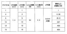 図7、及び図8に示す検証結果より、受電電力はアスペクト比が10以上になると急激に受電電力が増大する事が分かった。アスペクト比を10以上に設定することにより、コア12a内部の反磁界は小さくなり、反磁界による磁束Mbが減少することによって有効磁束Maは増加し、受電電力は増加する。  From the verification results shown in FIG. 7 and FIG. 8, it was found that the received power increases rapidly when the aspect ratio becomes 10 or more. By setting the aspect ratio to 10 or more, the demagnetizing field inside the