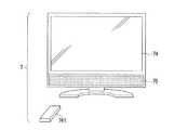 図2は、コンテンツ再生装置7の外観図である。コンテンツ再生装置7は、映像を表示する表示部74、音声を出力するスピーカー75、コンテンツの選択などの操作入力を行うためのリモートコントローラ761を備える。In FIG. 1, a solid line indicates connection by a data line such as an Ethernet (registered trademark) cable, an optical fiber, or a USB (Universal Serial Bus) cable, and a one-dot chain line indicates connection of a power line. That is, the Ethernet (registered trademark)