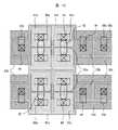 尚、本願発明は、TFTにおける、ゲート電極及びソース/ドレイン電極の基板面への投影像に関する、配置及び平面形状の相互関係に関するものであり、より詳しくは、ゲート電極及びソース/ドレイン電極、及びゲート電極及びソース/ドレイン電極と同じ工程で形成される各電極用の導体層の配置及び平面形状の相互関係に関するものである。その導体層が、具体的な電極の役割を担わない場合でも、各導体層形状をいかにし、且ついかに配置するかによって、TFTのゲート電極及びソース/ドレイン電極をいかに稠密に配置するかに資することが出来る。この意味において、ゲート電極及びソース/ドレイン電極の各用語は、特段のことわりのない限り、ダミーゲート電極及びダミーソース/ドレイン電極をも含めた各電極用の導体層の意味として使用する。ゲート電極及びソース/ドレイン電極或いは、ダミーゲート電極及びダミーソース/ドレイン電極の役割は、本発明の発明思想に基づきつつ、設計にゆだねられることは言うまでもない。 The present invention relates to the relationship between the arrangement of the gate electrode and the source / drain electrode on the substrate surface in the TFT and the relationship between the planar shape, and more specifically, the gate electrode and the source / drain electrode, and The present invention relates to the arrangement of the conductor layers for each electrode formed in the same process as the gate electrode and the source / drain electrode and the mutual relationship between the planar shapes. Even if the conductor layer does not serve as a specific electrode, it contributes to how densely the TFT gate electrode and source / drain electrode are arranged depending on how and how each conductor layer shape is arranged. I can do it. In this sense, the terms “gate electrode” and “source / drain electrode” are used to mean the conductor layer for each electrode including the dummy gate electrode and the dummy source / drain electrode unless otherwise specified. Needless to say, the roles of the gate electrode and the source / drain electrode or the dummy gate electrode and the dummy source / drain electrode are left to the design based on the inventive concept of the present invention.