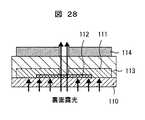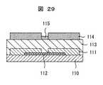 前述したように、トップゲート構造の場合は、先ず、TFT用の透光性基板上に、ソース/ドレイン電極をパターニングしてから半導体層を形成する以外に、半導体層を形成してからソース/ドレイン電極をパターニングする方法も考えられる。二つ目の方法を、図26から図30に示す。透光性基板110上に、先ず、半導体層112を形成し(図27)、この上部にソース/ドレイン電極111を形成する(図27)。次いで、ゲート絶縁膜113を形成し、この上部に撥水性レジスト膜114を形成する。そして、背面から露光する(図28)。選択的に除去された箇所にゲート電極115を形成する(図24)。最後に、これまでと同様に、保護膜116及び配線117を形成する。  As described above, in the case of the top gate structure, first, in addition to patterning the source / drain electrodes after forming the semiconductor layer on the light-transmitting substrate for TFT, the source / drain is formed after forming the semiconductor layer. A method of patterning the drain electrode is also conceivable. The second method is shown in FIGS. First, the