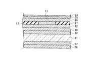 本発明の第4の実施の形態に係る半導体発光素子においても、図20に示すように、金属層12を用いて、シリコン基板構造と、エピタキシャル成長層からなるLED構造を貼り付けることにより、反射率のよい金属反射層を形成することを可能にしている。金属反射層は、予め、LED構造側に配置された金属層12によって形成される。LEDからの放射光は、絶縁層17と金属層12との界面によってミラー面が形成されるため、当該ミラー面において反射される。金属コンタクト層11は、金属層12とエピタキシャル成長層26とのオーミックコンタクトを取るための層であるが、金属層12とエピタキシャル成長層26との界面に介在し、絶縁層17と同程度の厚さを有する。  Also in the semiconductor light emitting device according to the fourth embodiment of the present invention, as shown in FIG. 20, by using a