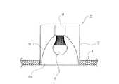 基板は、光源としての発光素子を配設するための部材で、例えば、アルミニウム、銅、ステンレス等の熱伝導性の良好な金属で構成し、その表面にシリコーン樹脂等の電気絶縁層を介して配線パターンを形成し、この配線パターン上に発光素子を実装して配設されることが好ましいが、基板の構成および実装するための手段は特定のものに限定されない。基板の材質も、例えば、エポキシ樹脂等の合成樹脂やガラスエポキシ材、紙フェノール材等の非金属性の部材で構成されてもよい。さらにセラミックスで構成されたものであってもよい。本発明においては、これら、非金属製の基板に対して電線の損傷を防止するための保護部材を設けることが許容される。また、基板の形状は、点または面モジュールを構成するために板状の円形、四角形、六角形などの多角形状、さらには楕円形状等をなすものであってもよく、目的とする配光特性を得るための全ての形状が許容される。基板の電線挿通部は、基板の板面を貫通する円形の孔で形成することが好ましいが、孔の形状は長孔状、角孔状等、特定の形状には限定されない。また、基板の外周縁に開口する切欠状の孔で形成したものであってもよい。 The substrate is a member for disposing a light emitting element as a light source, and is made of a metal having good thermal conductivity such as aluminum, copper, and stainless steel, and an electric insulating layer such as a silicone resin is provided on the surface thereof. It is preferable that a wiring pattern is formed and a light emitting element is mounted on the wiring pattern, but the configuration of the substrate and the means for mounting are not limited to a specific one. The material of the substrate may also be made of a non-metallic member such as a synthetic resin such as an epoxy resin, a glass epoxy material, or a paper phenol material. Further, it may be made of ceramics. In the present invention, it is permissible to provide a protective member for preventing the electric wire from being damaged on these non-metallic substrates. In addition, the shape of the substrate may be a plate-like circle, a rectangle, a polygon such as a hexagon, or an ellipse to form a point or surface module, and the desired light distribution characteristics. All shapes to obtain are acceptable. The wire insertion portion of the substrate is preferably formed by a circular hole penetrating the plate surface of the substrate, but the shape of the hole is not limited to a specific shape such as a long hole shape or a square hole shape. Further, it may be formed by a notch-shaped hole opened at the outer peripheral edge of the substrate.