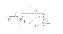 点灯回路19は、概略を図3に示すように、商用電源Eの交流電圧100VをダイオードブリッジDBおよび平滑コンデンサC1により整流平滑して直流電圧24Vに変換し、各LED11に供給する。R1は各LED11に流れる電流を設定するチップ抵抗、14c1はLED11の点灯制御用のトランジスタ、このトランジスタのベース電位はチップ抵抗R2およびツェナダイオードDにより設定される。これにより、商用電源Eから電源を供給すると、交流電圧100VがダイオードブリッジDBおよび平滑コンデンサC1により直流電圧24Vに変換され、各LED11に対してチップ抵抗R2およびツェナダイオードDにより設定された電圧が印加され、トランジスタ14c1で制御された電流が各LED11に流れることで各LEDが点灯して発光する。  As schematically shown in FIG. 3, the