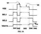 たとえば、駆動TFTのスレッショルド電圧VTは、同時に各セグメント用に生成される。その後、そのセグメントが正常な動作に置かれる。スレッショルド電圧の生成に必要なデータ・ラインおよび選択ラインを除くすべての余分な信号は(たとえば、図10のVSS)、各セグメント内の行の間において共有される。TFTの漏れ電流が小さいとすれば、妥当なストレージ・キャパシタを使用したVTの蓄積は、より頻繁でない補償サイクルに帰結する。その結果、電力消費が劇的に低減する。For example, the threshold voltage VT of the driving TFT is generated for each segment at the same time. The segment is then put into normal operation. All extra signals except the data lines and select lines needed to generate the threshold voltage (eg, VSS in FIG. 10) are shared between the rows in each segment. If the leakage current of the TFT is small, the accumulation of VT using reasonable storage capacitor results in compensation cycle a less frequent. As a result, power consumption is dramatically reduced.