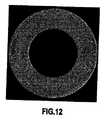 図12は、図4に関して上述したように、機械加工された銅プレートから作られ水冷管にろう付けされた誘導コイルを用いて緻密化されたプリフォームの緻密化を示すX-線スキャンである。図10および11と図12との間で認められる重要な特徴は、図12では(図10および11と異なり)周辺に伸びているはっきりした又は目立ったしみ等、緻密化レベルの大きな変化を示すもの、特に望ましくない低緻密化の領域、が存在しないことである。 FIG. 12 is an X-ray scan showing densification of a preform densified using an induction coil made from a machined copper plate and brazed to a water-cooled tube as described above with respect to FIG. . An important feature observed between FIGS. 10 and 11 and FIG. 12 is that in FIG. 12 (unlike FIGS. 10 and 11), there is a large change in the level of densification, such as clear or noticeable spots extending around. In particular, there are no undesired areas of low densification.