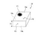 そして、欠陥検査工程でワーク19に欠陥F1、F2、F3が見つかった場合には、欠陥除去工程に移行し、この欠陥F1、F2、F3を適宜除去して光学部材を完成させる(S5)。すなわち、図2に示すように、ワーク19の表面19aに欠陥F1、F2がある場合は、例えば、ワーク19の表面19a、19bを研磨することにより、この欠陥F1、F2を除去する。また、ワーク19の内部19cに欠陥F3がある場合は、例えば、この欠陥F3を含む部位をワーク19から切除することにより、この欠陥F3を除去する。すると、欠陥F1、F2、F3を含まない高品質な光学部材が得られる。ここで、合成石英ガラス製の光学部材の製造が完了する。  When defects F1, F2, and F3 are found in the